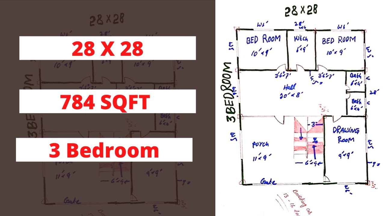 28 X 28 House Design 784 Sqft Ghar Ka Naksha With 3 Bedroom 28 28 House Plan 28by28 Map Youtube